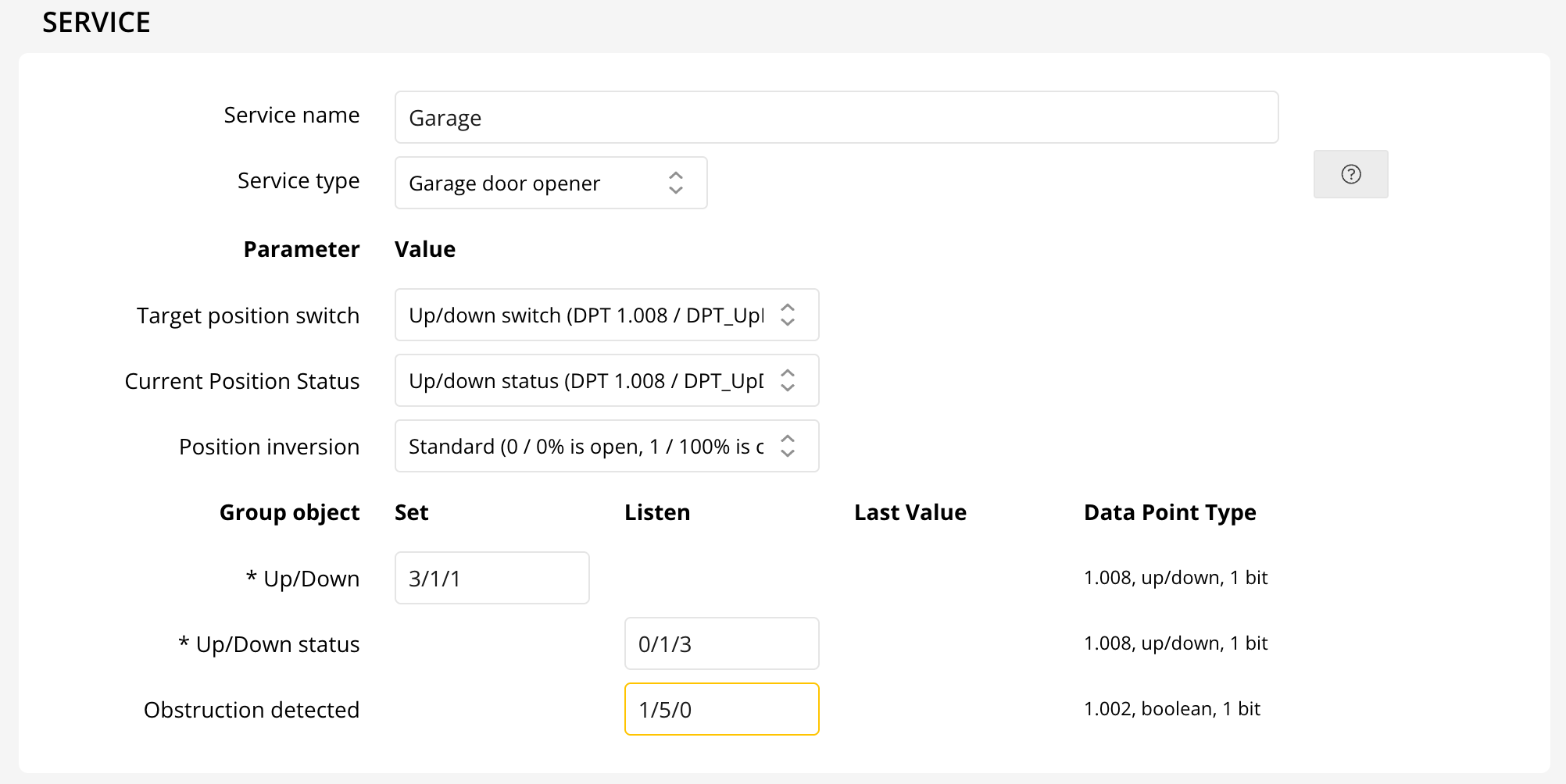 Optionally you can provide a Listen address for Obstruction detection which has a DataPointType of 1.002