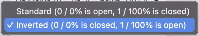 Here we choose what value we get if the window covering is open or vice versa. This parameter differs from device to device